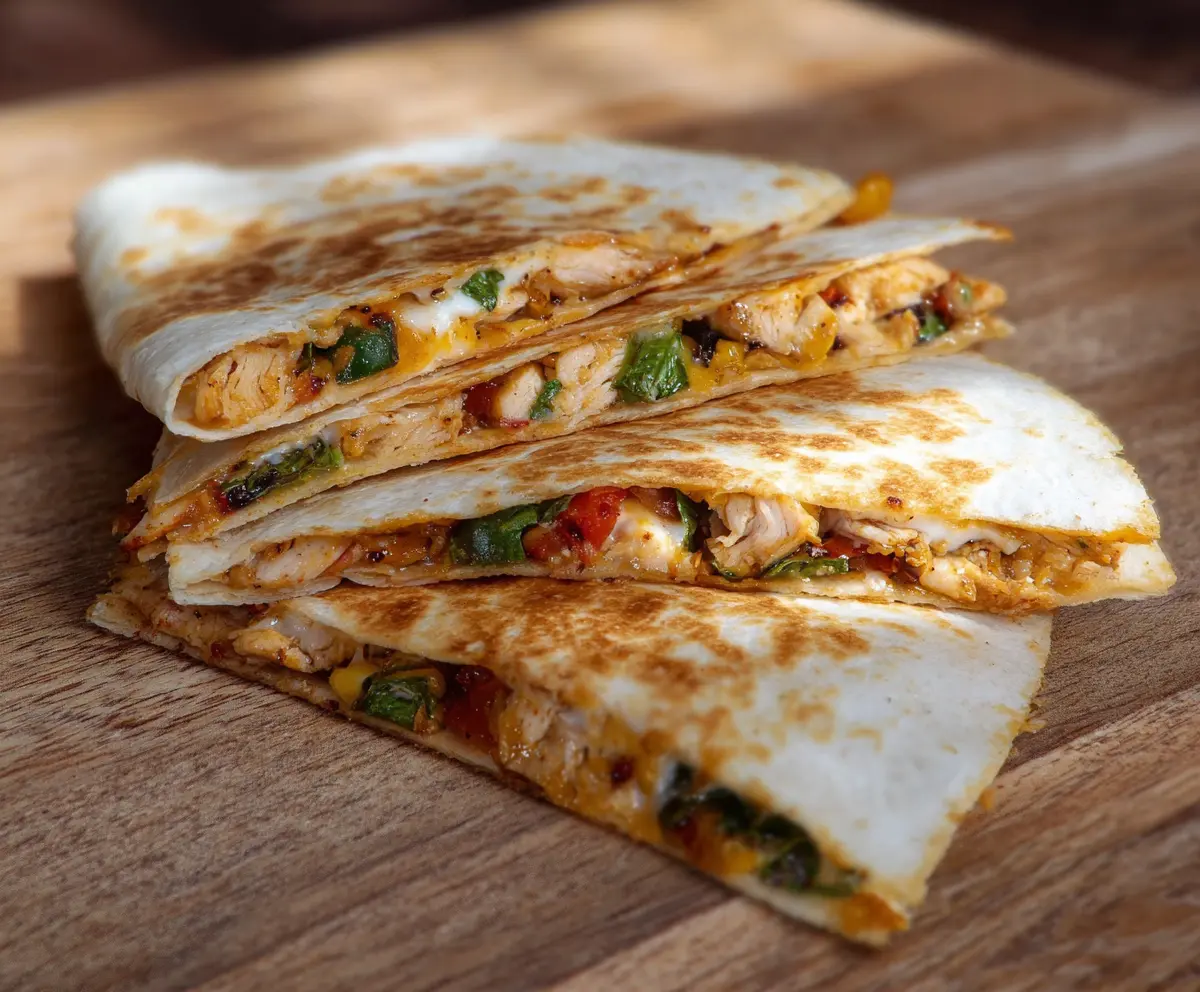 This recipe takes about 15 minutes to prepare and cook. In just a short time, you’ll be enjoying delicious, cheesy quesadillas filled with flavorful chicken and veggies. Perfect for a quick lunch or dinner!
