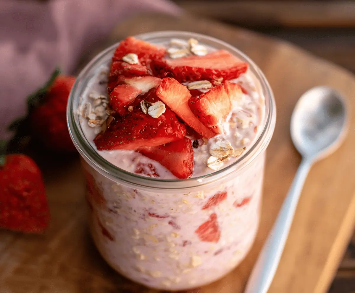 Strawberry Overnight Oats are a tasty and easy breakfast option! Just mix oats with milk, yogurt, and fresh strawberries, then let them chill overnight.