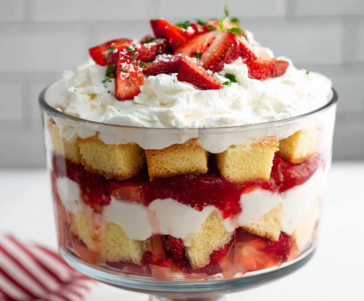 For a decorative touch, garnish the top with extra sliced or whole strawberries. Then, cover the trifle and refrigerate it for at least 1 hour. This chill time lets all the flavors meld together and allows the cake to soak up the delicious strawberry juices.