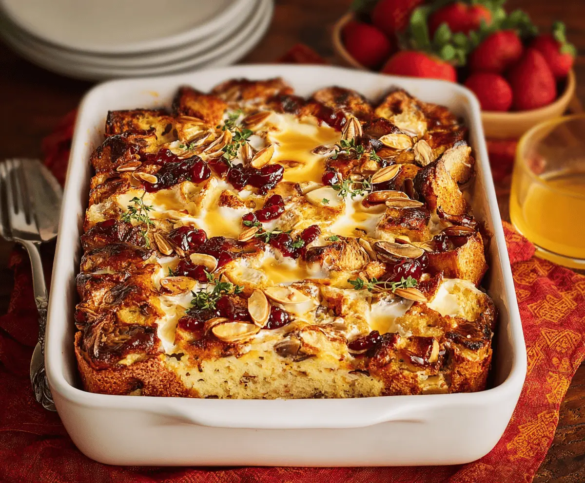 Sweet Breakfast Casserole with Strawberries and Caramel