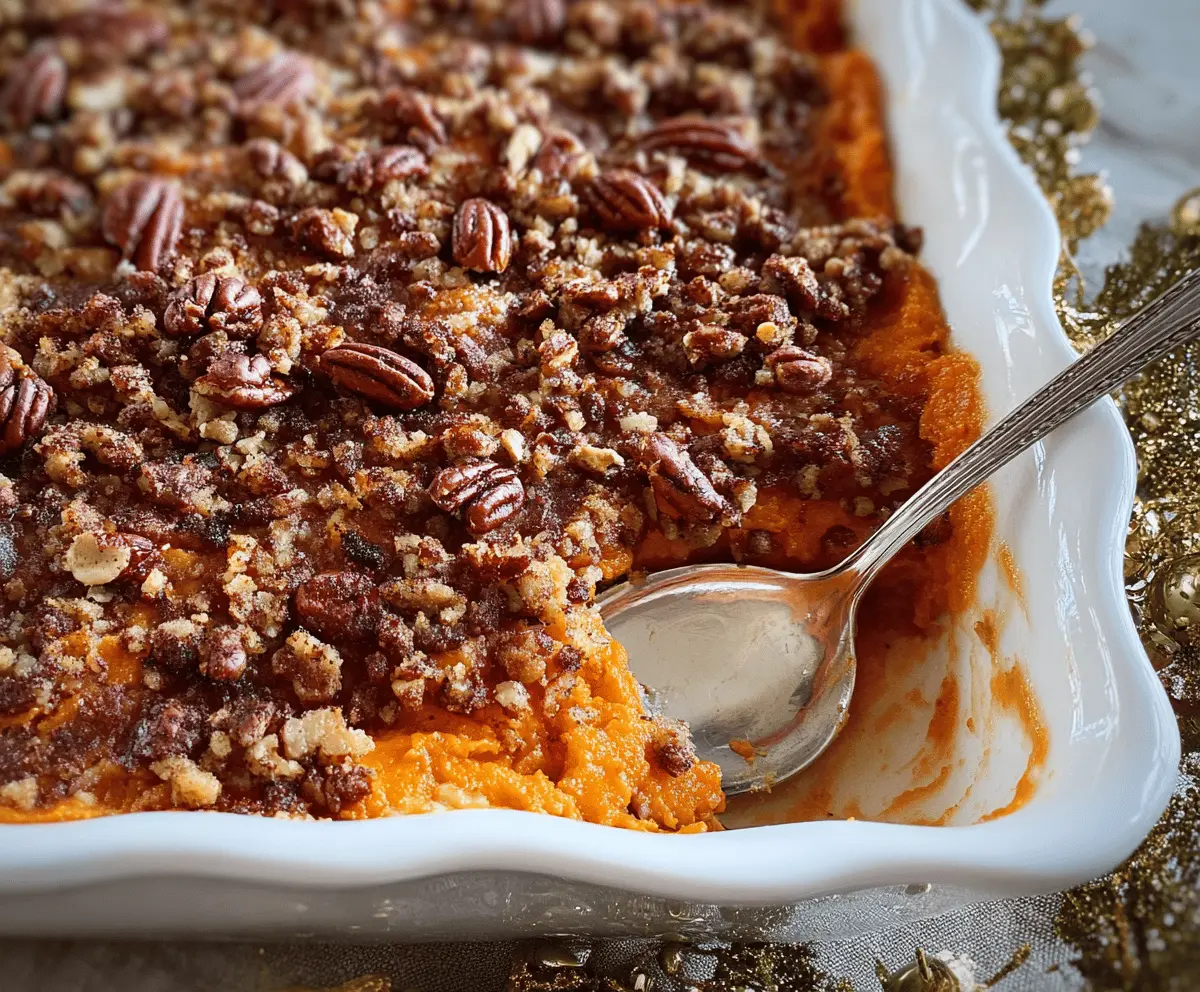 This sweet potato casserole with pecan streusel is the ultimate indulgence—creamy, sweet, and topped with a crunchy pecan mix. Perfect for holiday gatherings or any cozy occasion with family and friends!