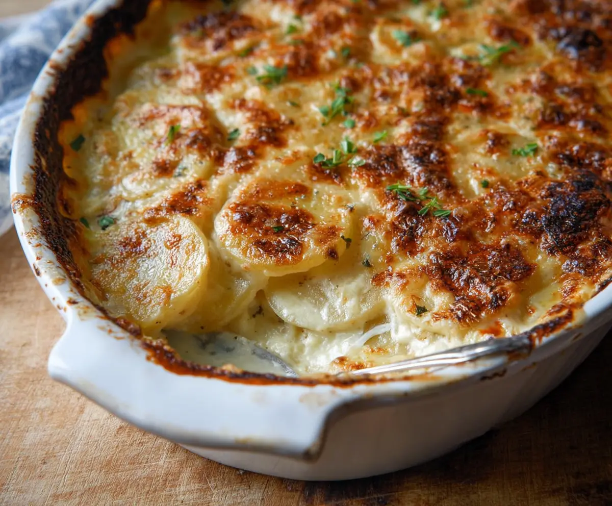 This dish features layers of tender potatoes baked in a creamy cheese sauce made from three kinds of cheese, creating a rich and comforting side perfect for family dinners or holiday meals. Enjoy!